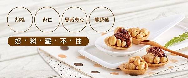 綜合堅果塔裡包含了杏仁、夏威夷豆、胡桃等不同種口味的堅果,只要一口就能滿足所有的味蕾~