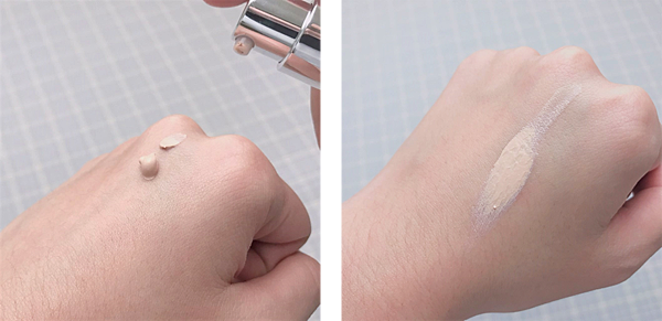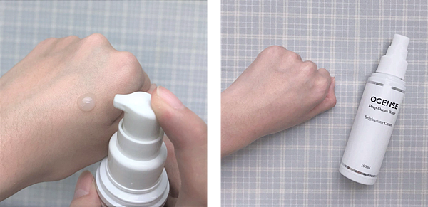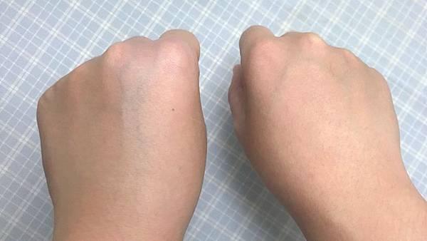 用單手試擦給大家看看,再用兩手做比較,左邊上過OCENSE隔離霜就顯得比較透亮,看起來皮膚很好會發光~毛孔也有被修飾一些掉喔,不過臉上有些斑點或疤痕的可能還是需要用遮瑕,這款隔離霜的遮瑕力不算高喔~