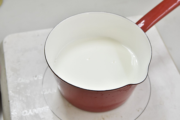 2. 柳營鮮乳、砂糖煮到約60度,鍋邊冒泡即可,千萬不要煮到滾